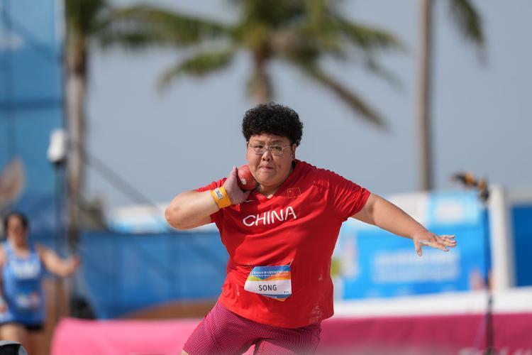 沙滩田径赛场上,中国选手宋佳媛成为女子铅球冠军,这是中国体育代表团在本届亚沙会沙滩田径样式中成绩的首枚金牌。宋佳媛在终末一投中投出19米15,夺冠的同期也刷新了赛会记载。