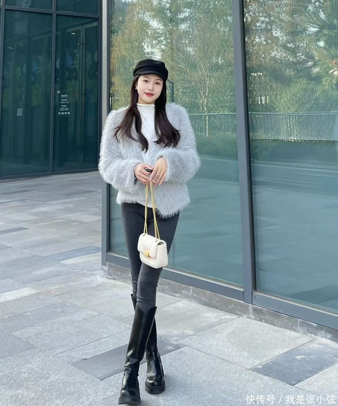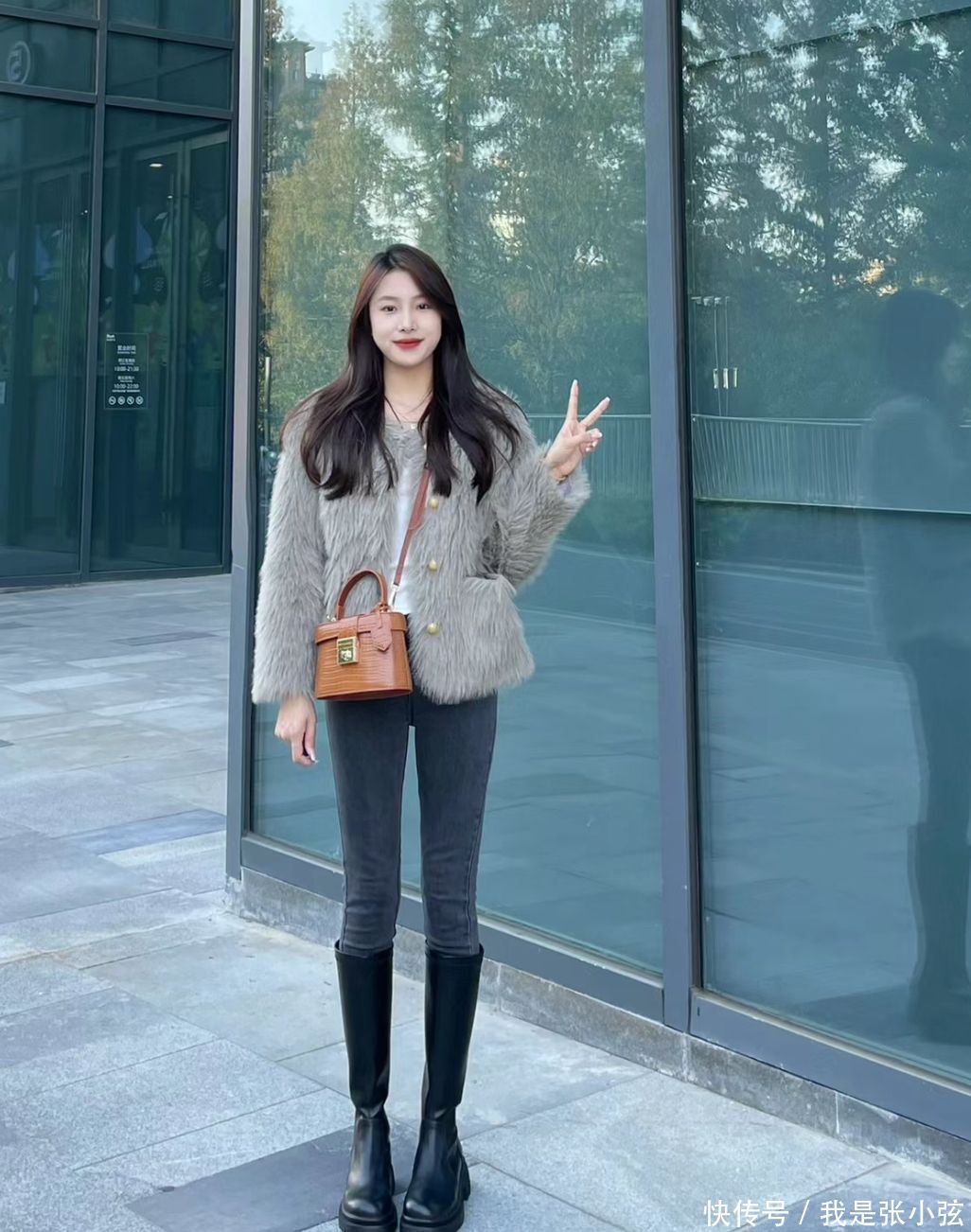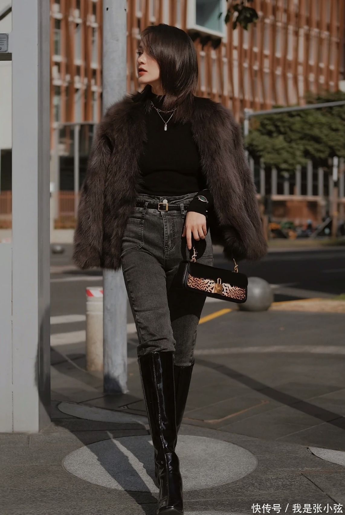 穿衣打扮认真一个对比感,比如皮草是属于版型宽松的单品,咱们在挑选下装时,就一定要优先选拔修身的技俩,但与此同期,也要学会逃匿太紧身的情况。修而不紧的裤装,穿在身上要愈加得志大方,再搭配上一对修饰腿型的长靴,好体魄骤然就或者穿出来。