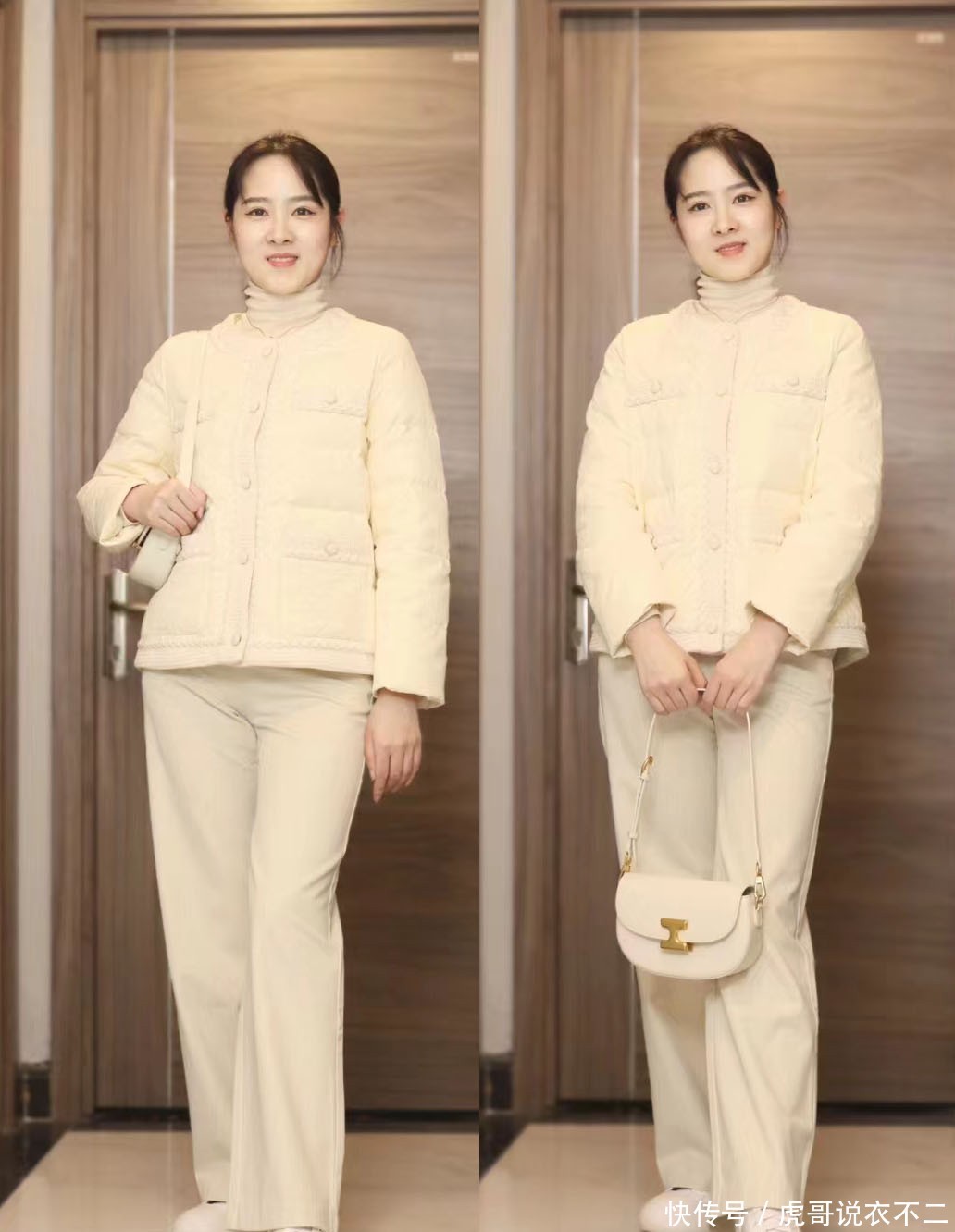 因此针对阔腿裤这种恣意感卓著的裤装,中年女东谈主也可以将其应用到冬季造型中,有了各种短外衣的互助作用,可以草率幸免横向拉伸体型、以致于显胖的问题。